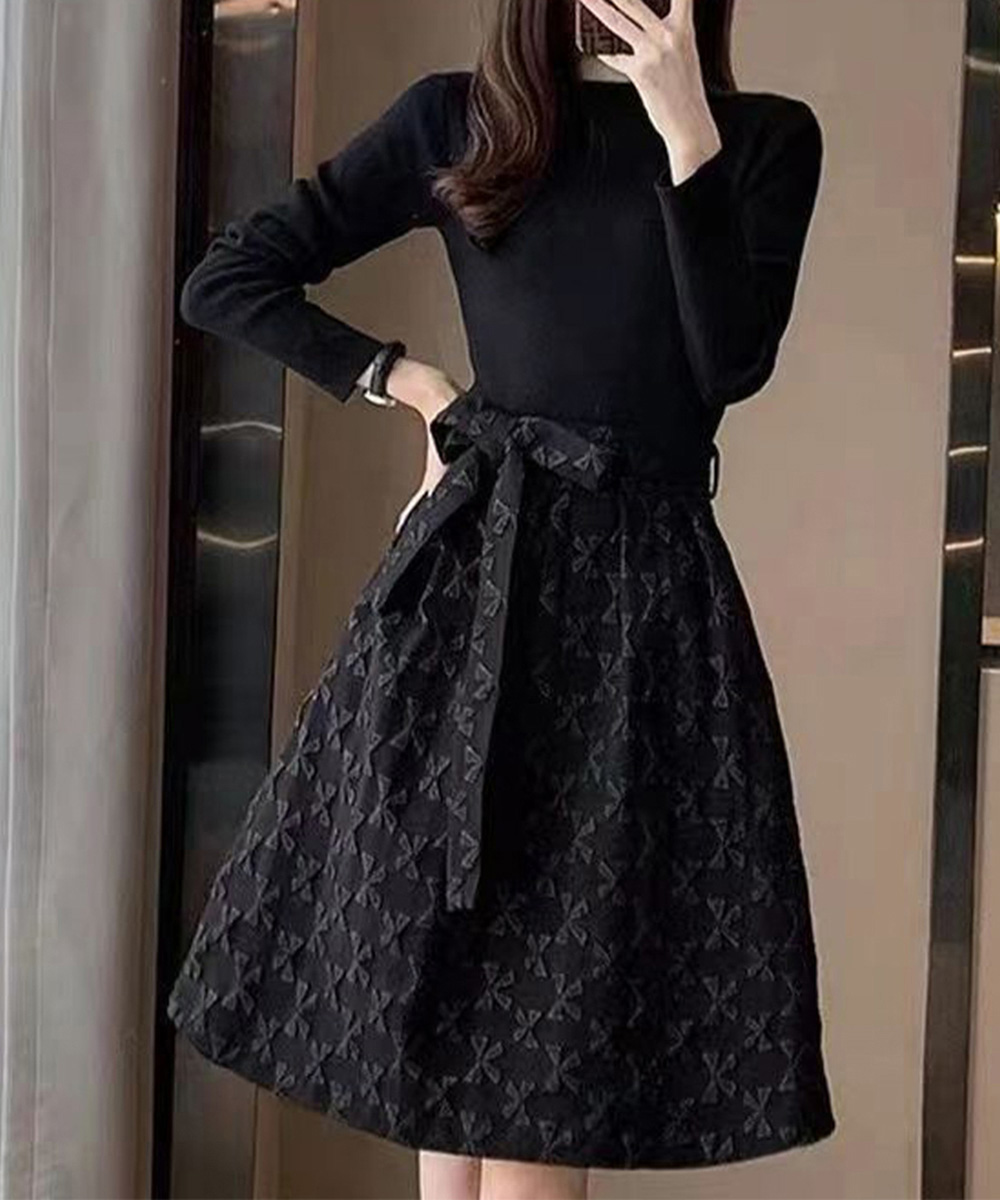 ウエストベルトがスタイルアップ効果を生み出し、華やかで女性らしいシルエットを演出してくれます。