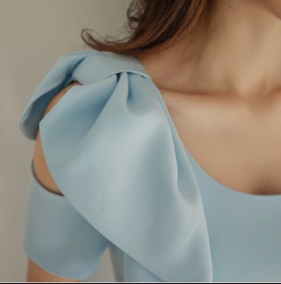 肩に施された立体的なリボンが可憐な印象を演出し、女性らしさを引き立てます。