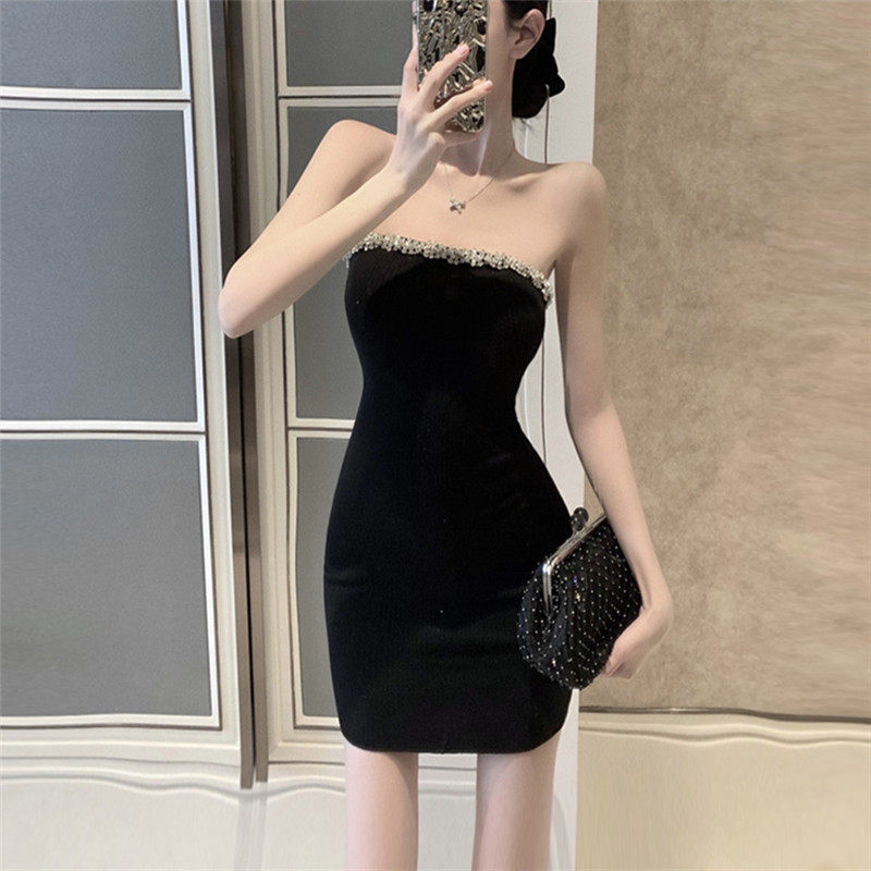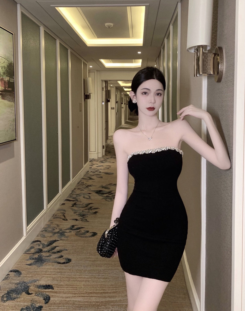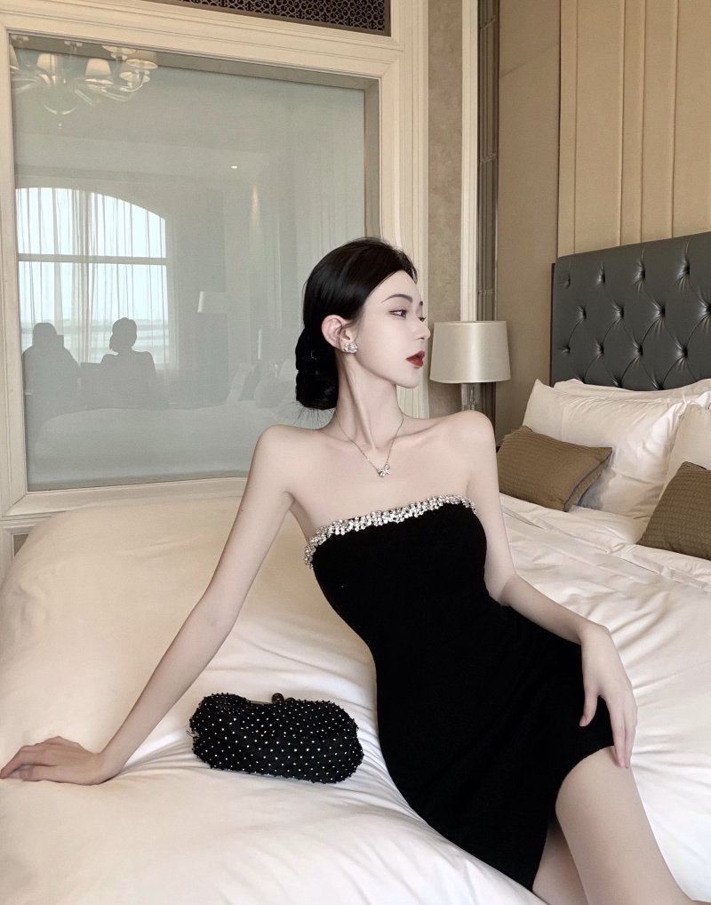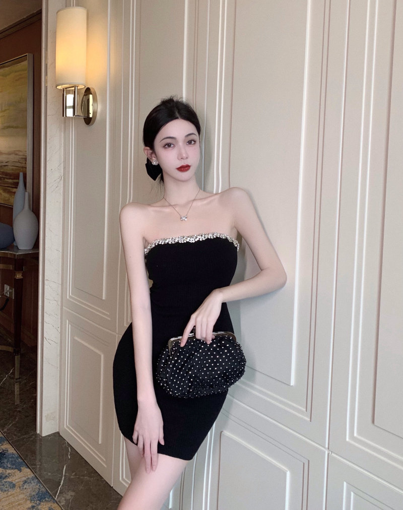 胸元のビジュー装飾が華やかなベアトップタイプのキャバドレスです。 高級感のあるベロア素材を使用し、上品な光沢が大人の魅力を引き立てます。 ボディラインに沿ったタイトなシルエットで女性らしい曲線美を演出します。 ミニ丈なので脚長効果も抜群で、パーティーシーンで視線を集める一着です。 キラキラと輝くビジューが夜のお店で映える華やかなデザインに仕上がっています。