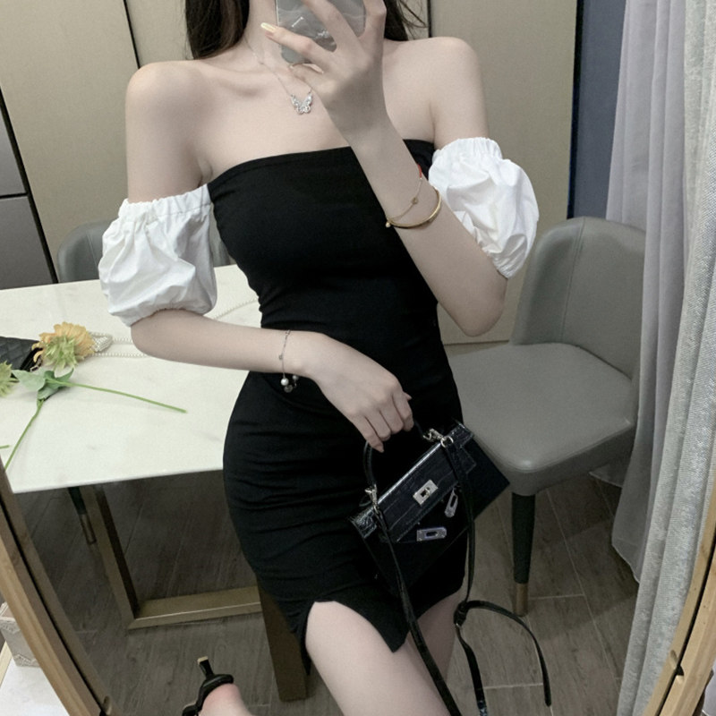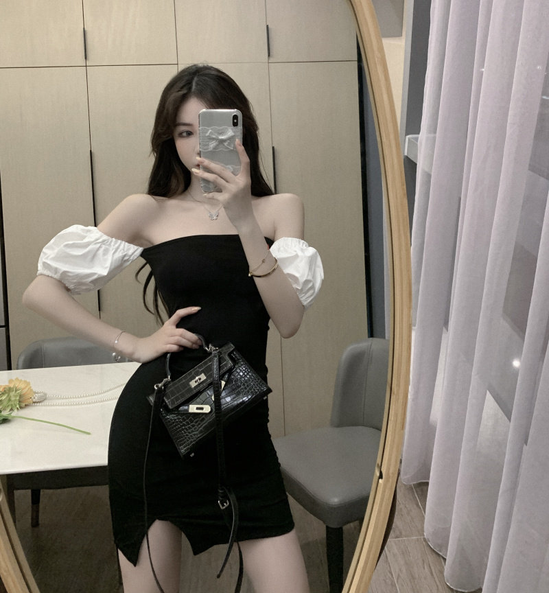 オフショルダーデザインにボリューム感のあるパフスリーブを組み合わせ、女性らしい甘さを演出します。
