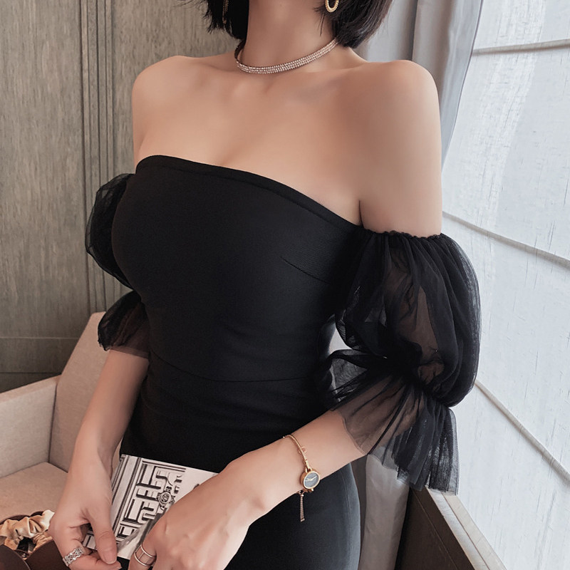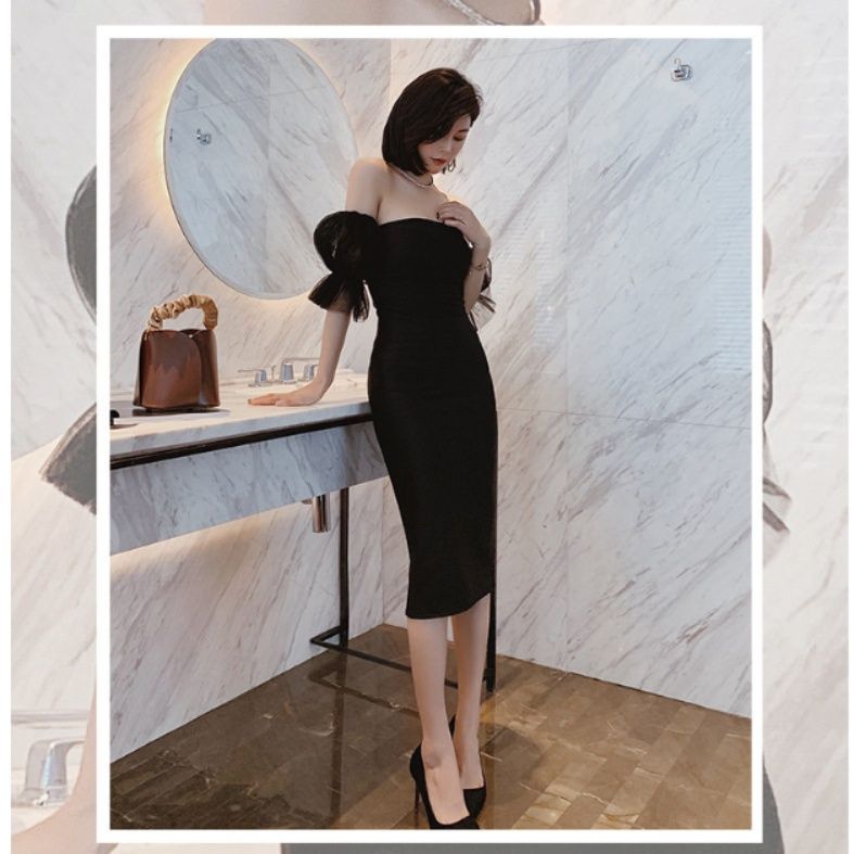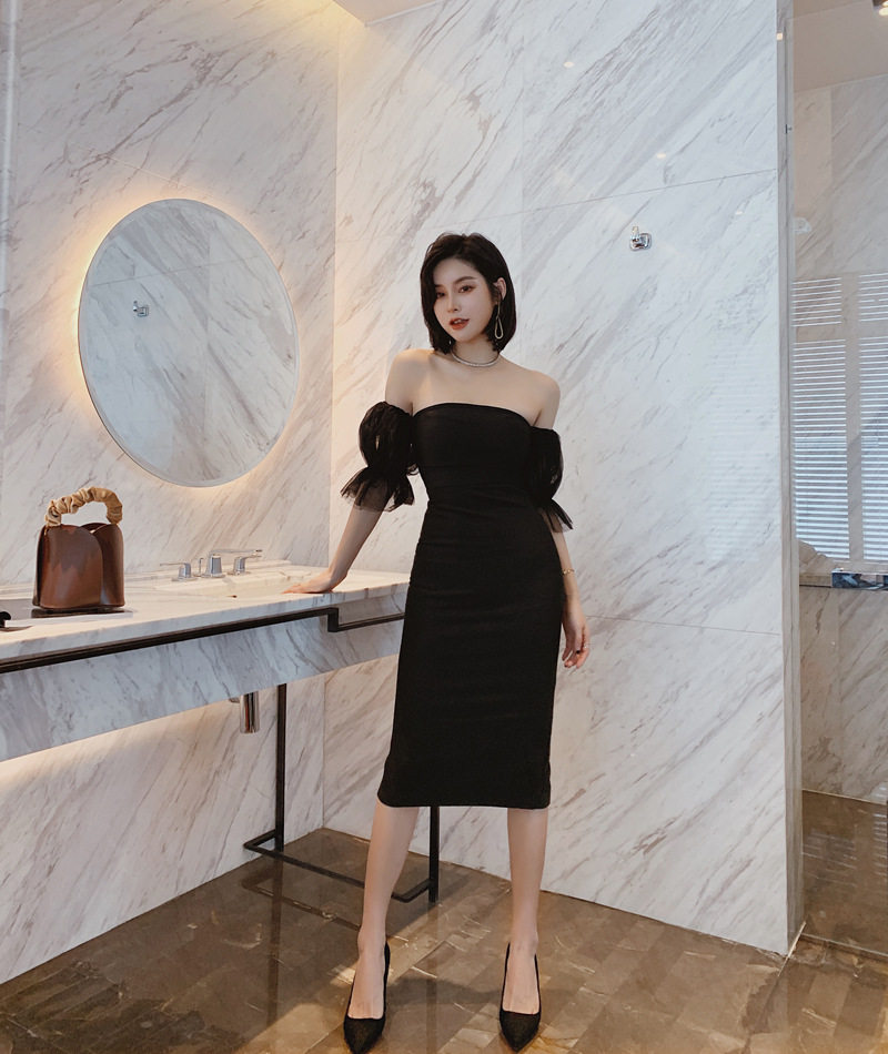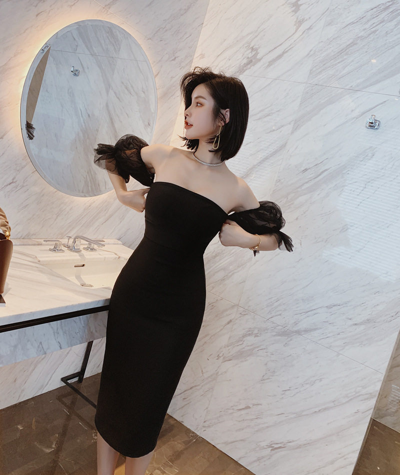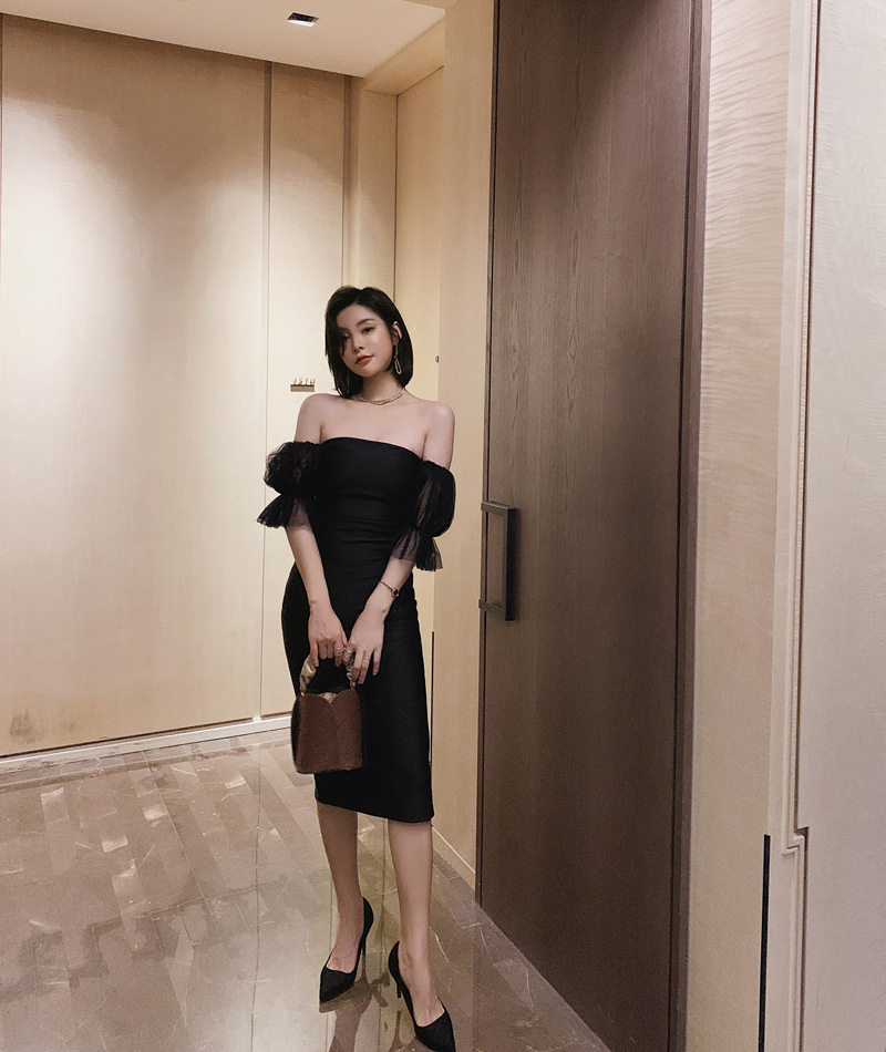 華やかなパフスリーブが印象的なオフショルタイプのキャバドレスです。