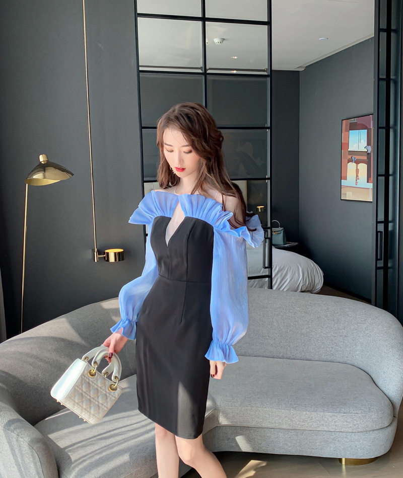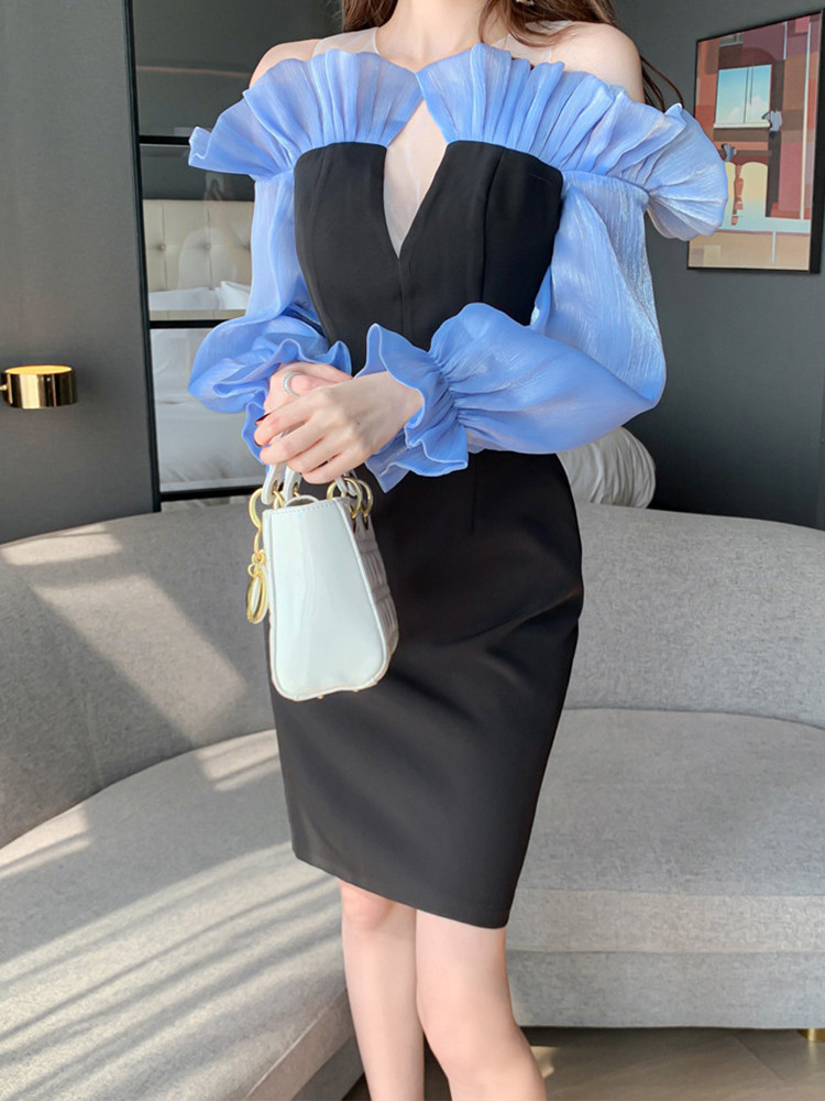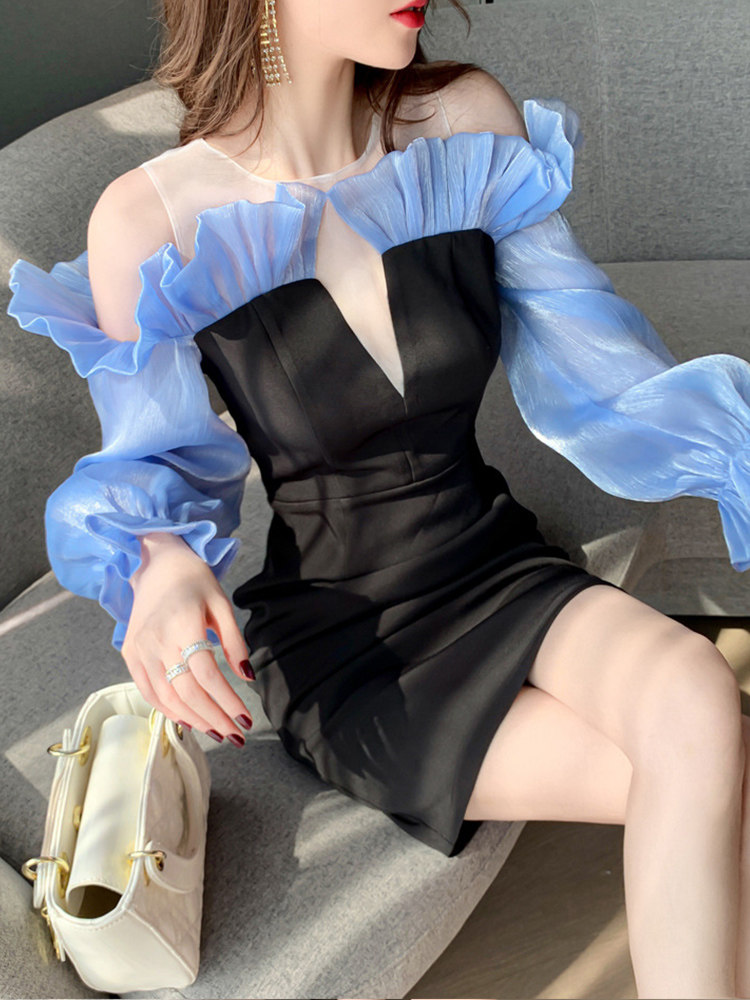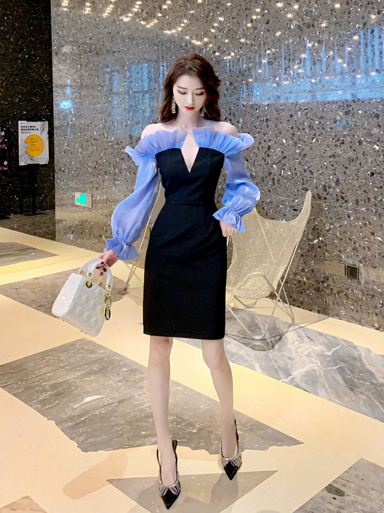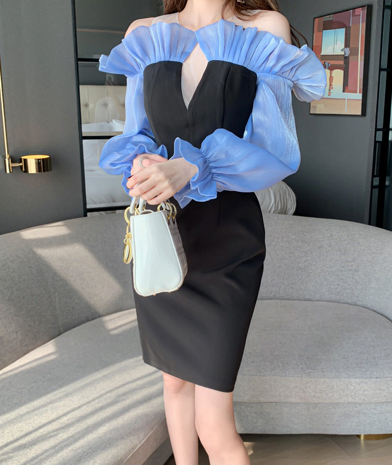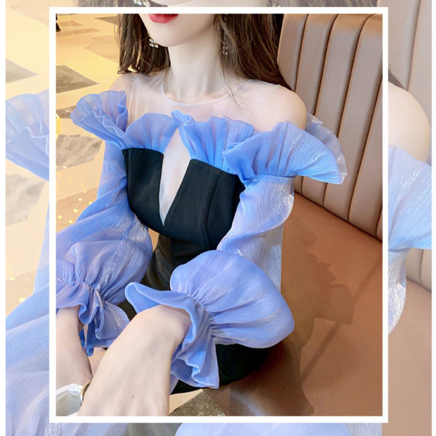 フリル袖のボリューム感と本体のシンプルさのバランスが絶妙で、特別な夜を彩る一着です。