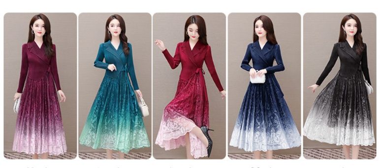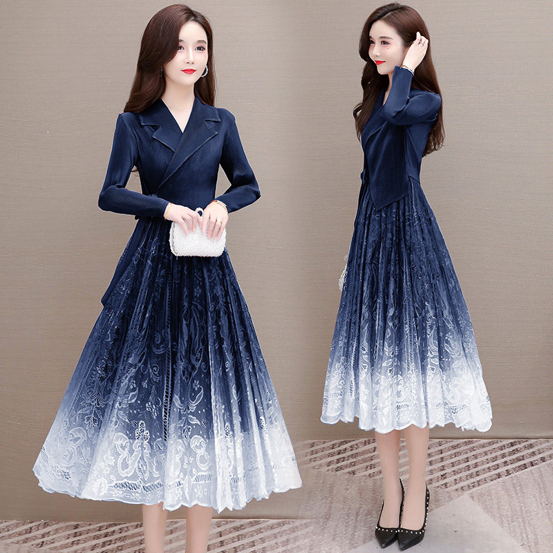 上品なグラデーションレースのスカート部分は繊細な刺繍が施され、裾に向かって華やかに広がります。