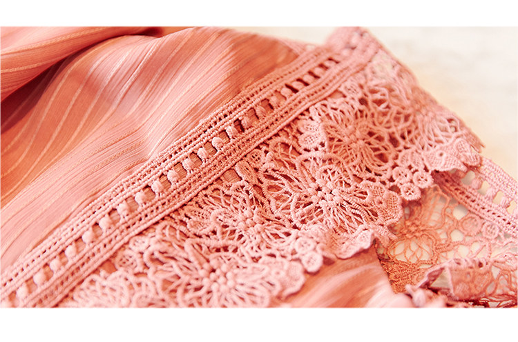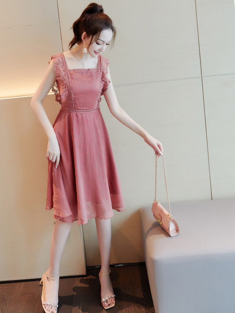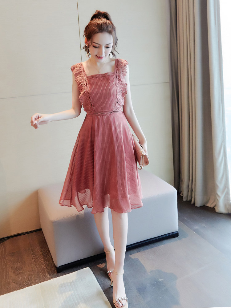 スクエアネックラインが鎖骨を綺麗に見せ、ウエストのレースベルトでスタイルアップ効果も抜群です。