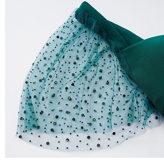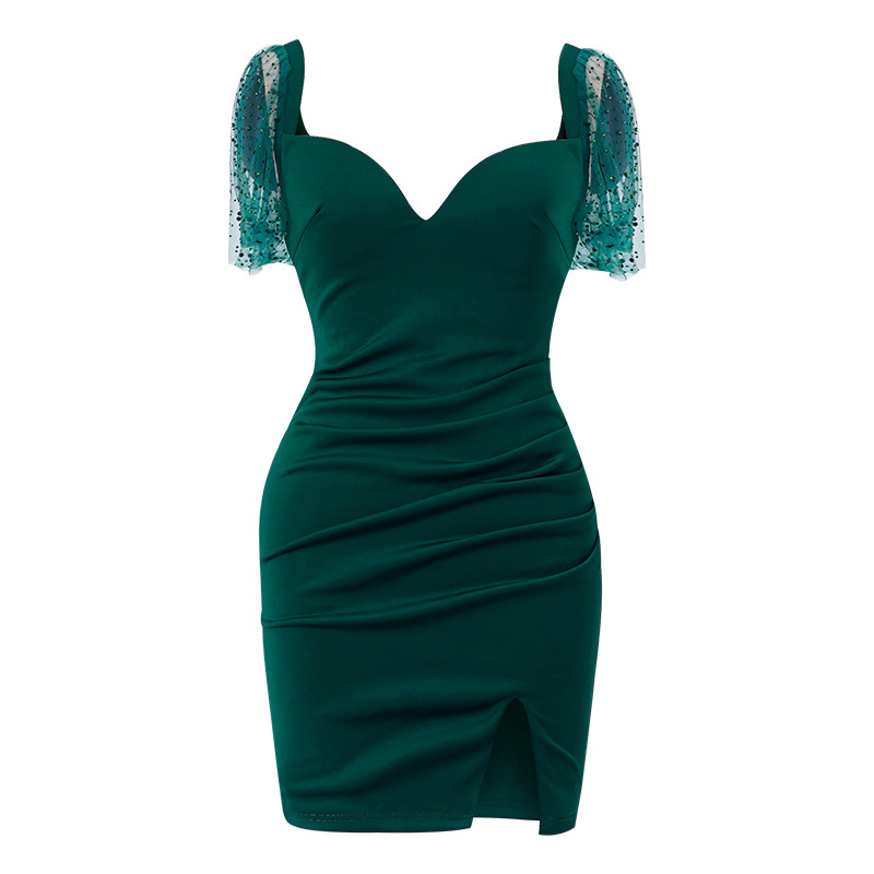 袖のチュール素材が上品な透け感を添え、大人の色気を引き出すミニ丈デザインです。