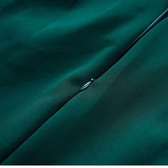 体のラインに沿ったタイトシルエットで女性らしさを際立たせ、サイドのスリットがさりげなく脚長効果を発揮します。