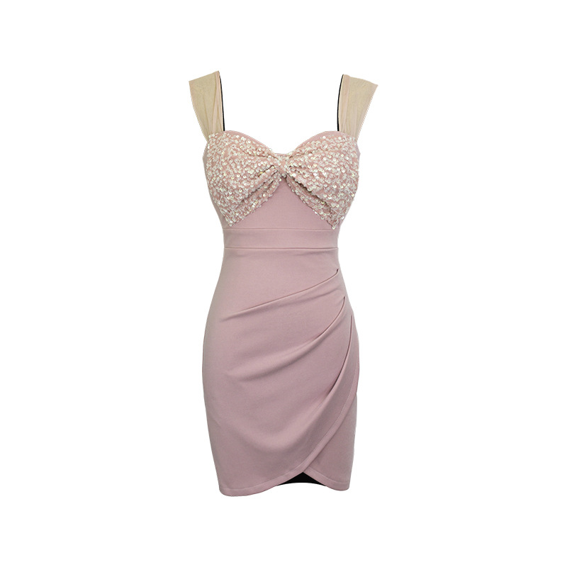 胸元のビジュー装飾が華やかさを演出するキャバドレスです。