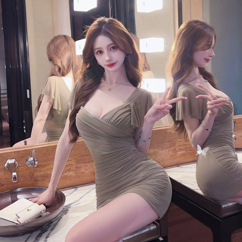 胸元を美しく見せるドレープデザインが魅力的なキャバドレスです。