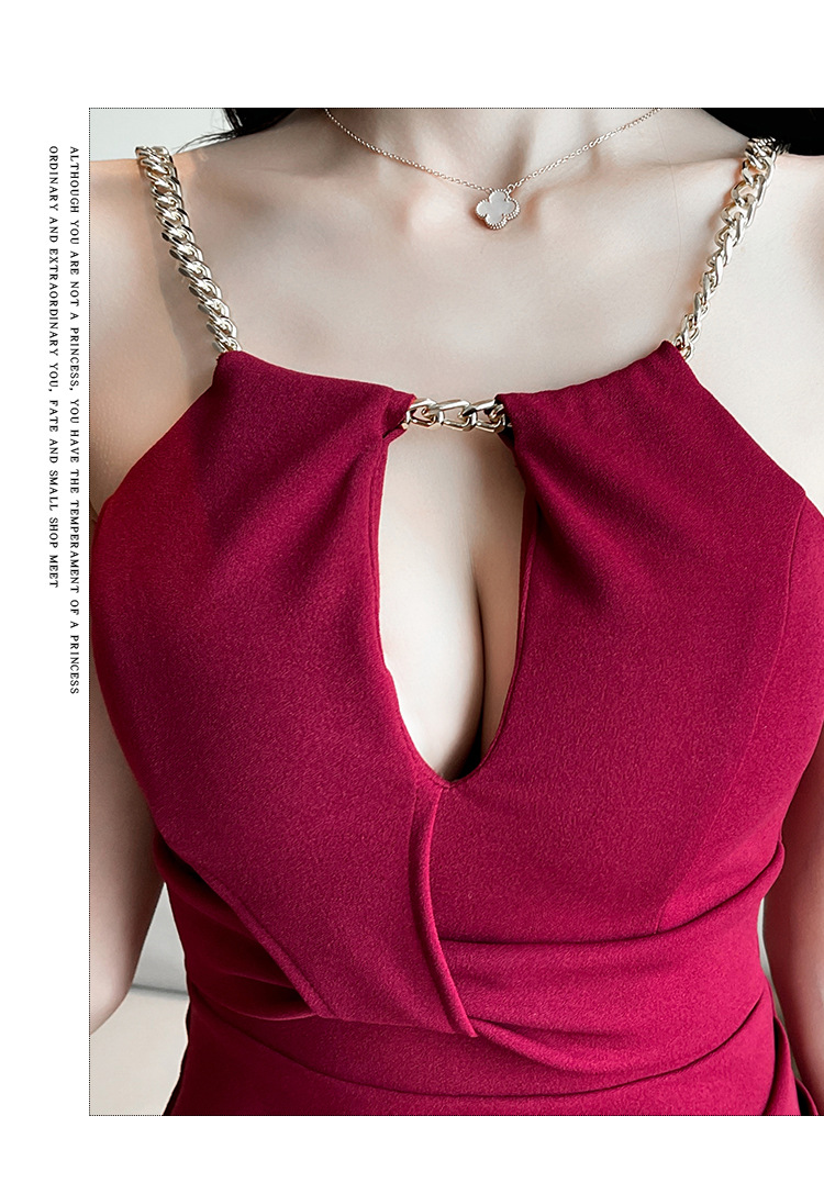 華奢なチェーンストラップが女性らしさを際立たせ、デコルテを美しく演出します。