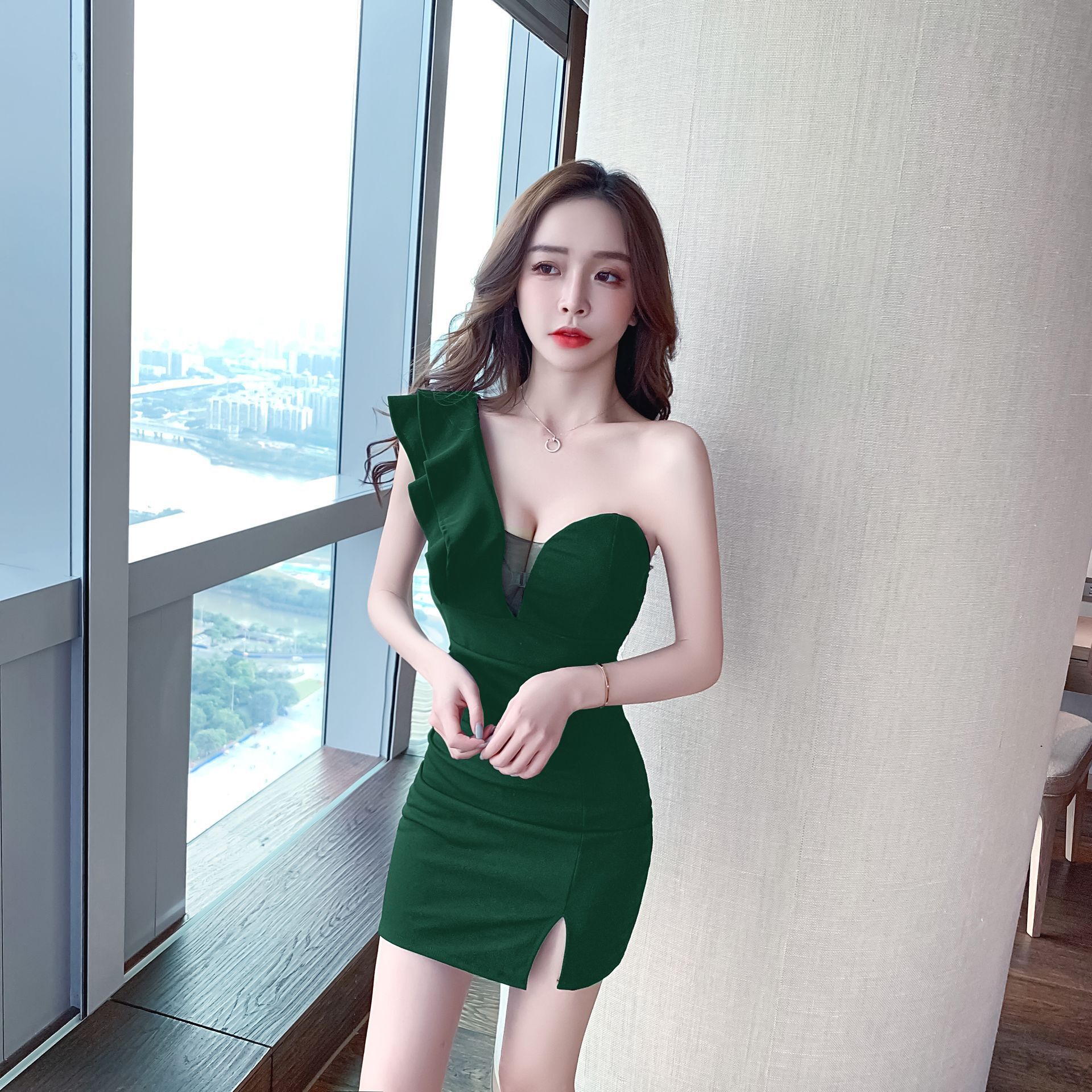 大胆なワンショルダーデザインが目を惹くキャバドレスです。