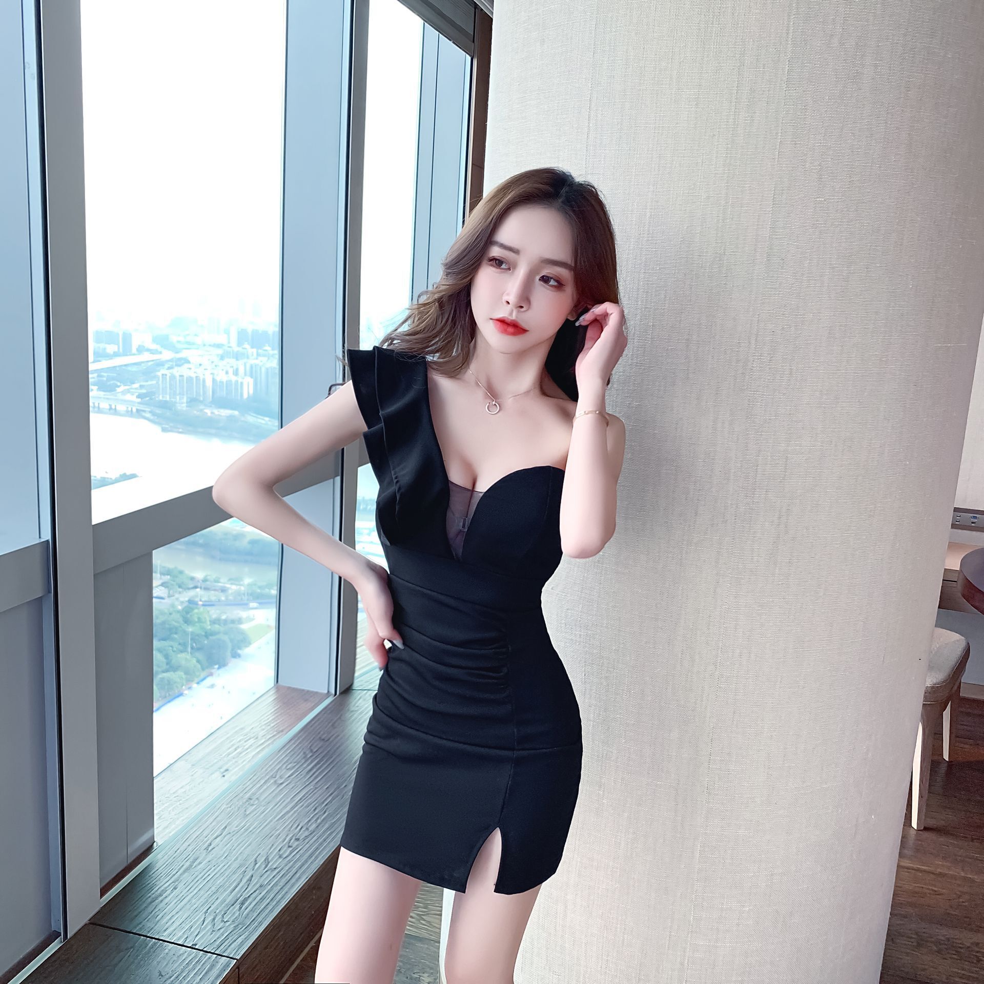 華やかなパーティーシーンにぴったりなミニ丈で、注目を集めること間違いなしの一着です。