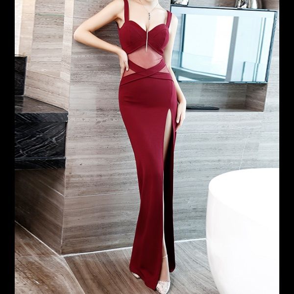 大胆な肌見せが魅力的なキャバドレスのロングタイプです。