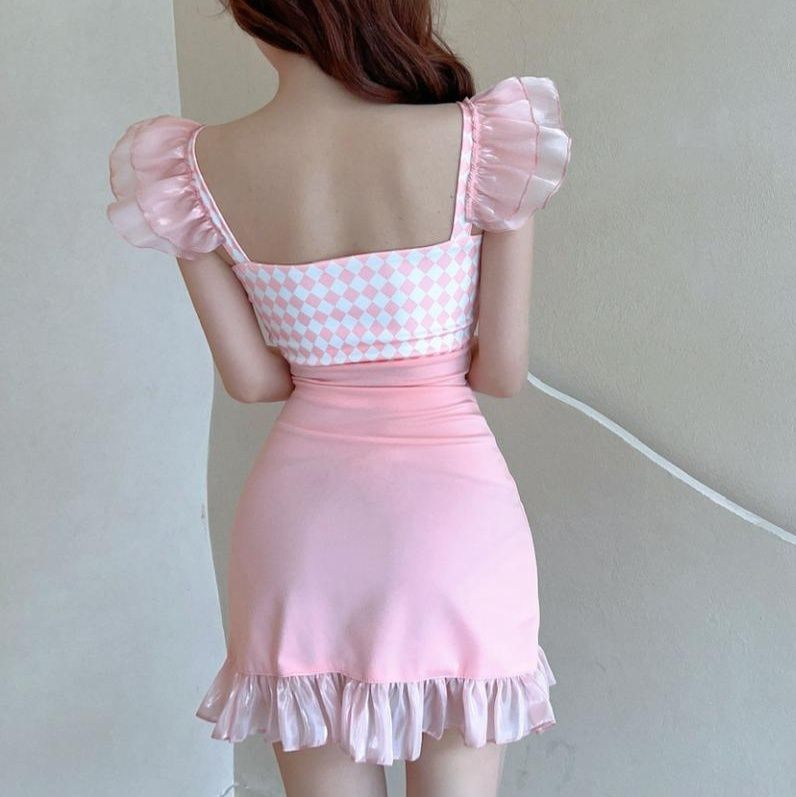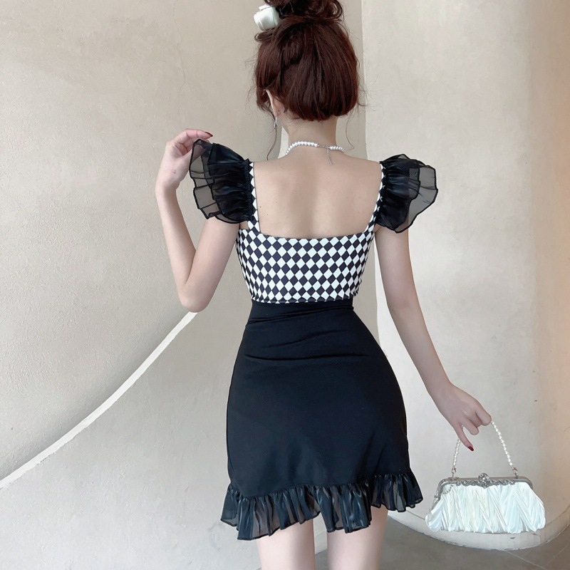 ミニ丈のスカート部分はすっきりとしたシルエットで、スタイルアップ効果も抜群です。