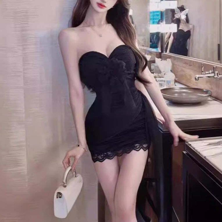 ベアトップデザインが女性らしいデコルテラインを美しく演出し、体のラインに沿ったタイトシルエットがスタイルを際立たせます。