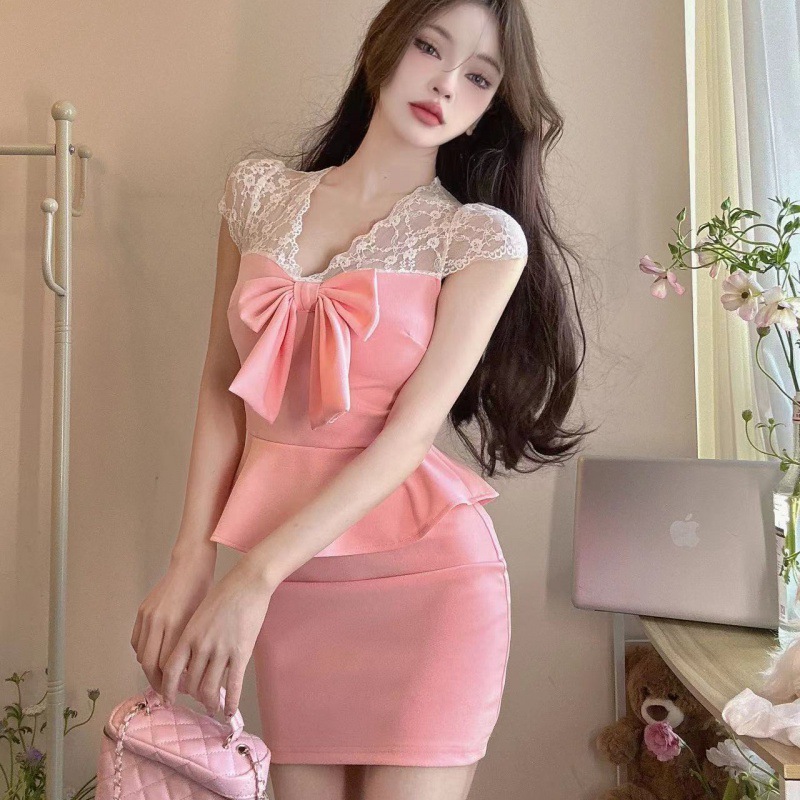 胸元の大きなリボンが目を引く華やかなキャバドレスミニです。