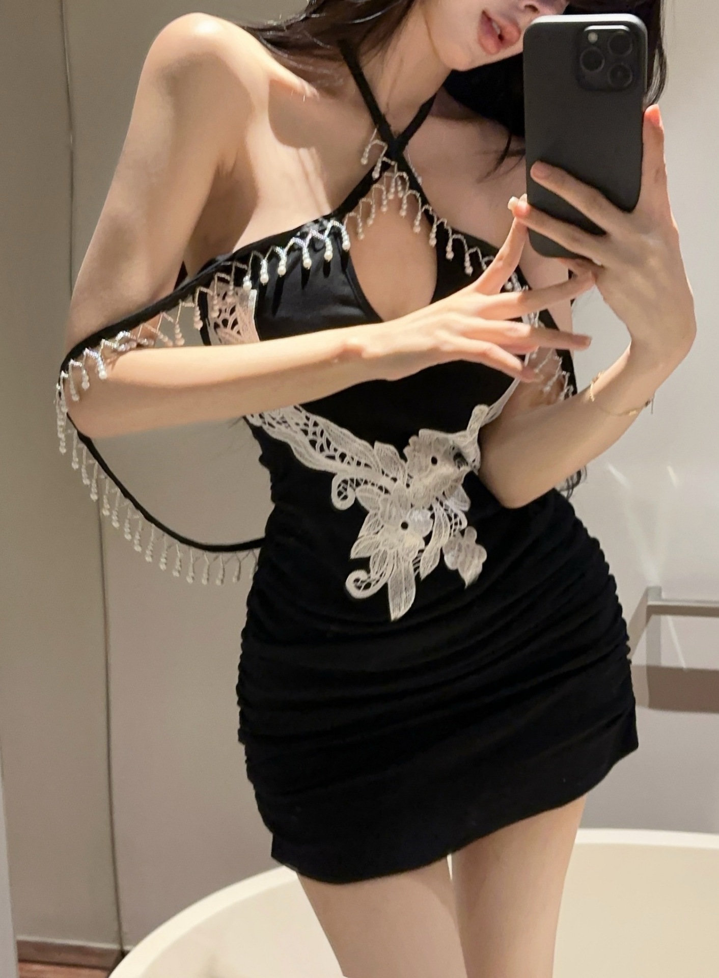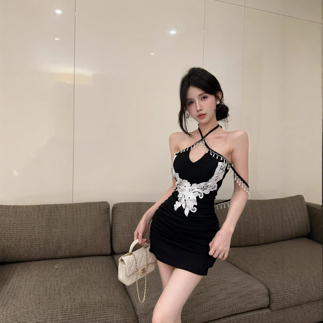 華やかな花柄刺繍レースが胸元とウエストを美しく彩るキャバドレスです。