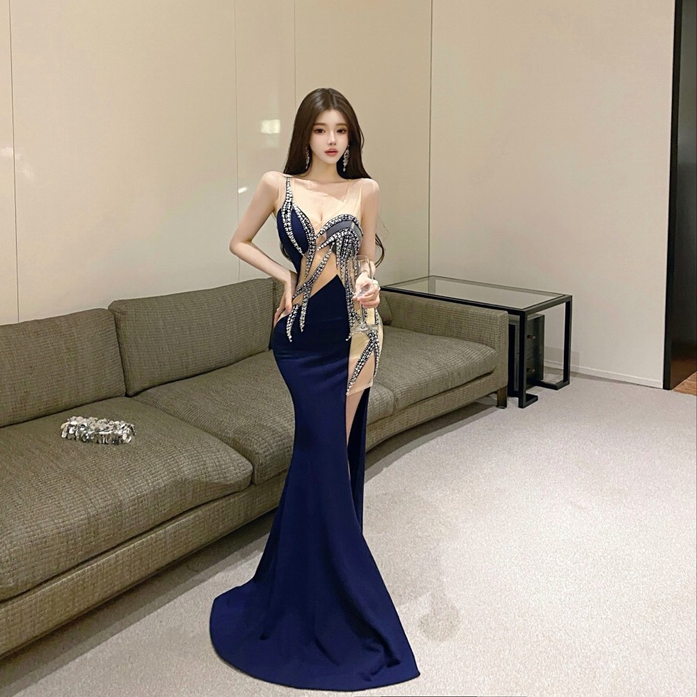 スリット入りのデザインで足元の動きも優雅に演出し、特別な夜を華やかに彩ります。