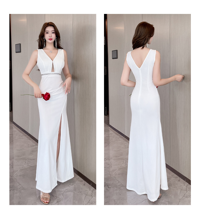 サイドに入った大胆なスリットが脚線美を際立たせ、セクシーさと上品さを両立しました。