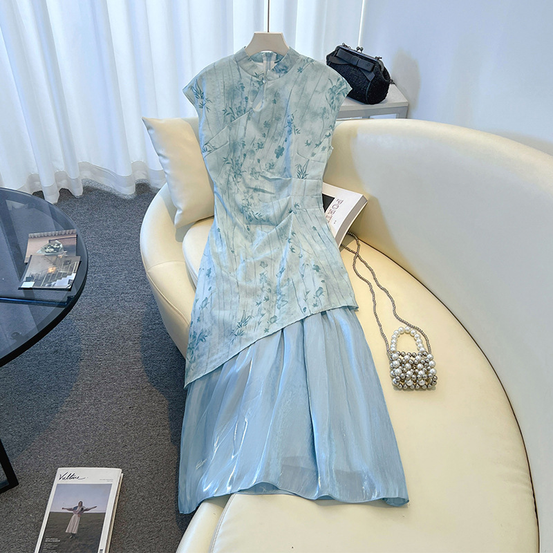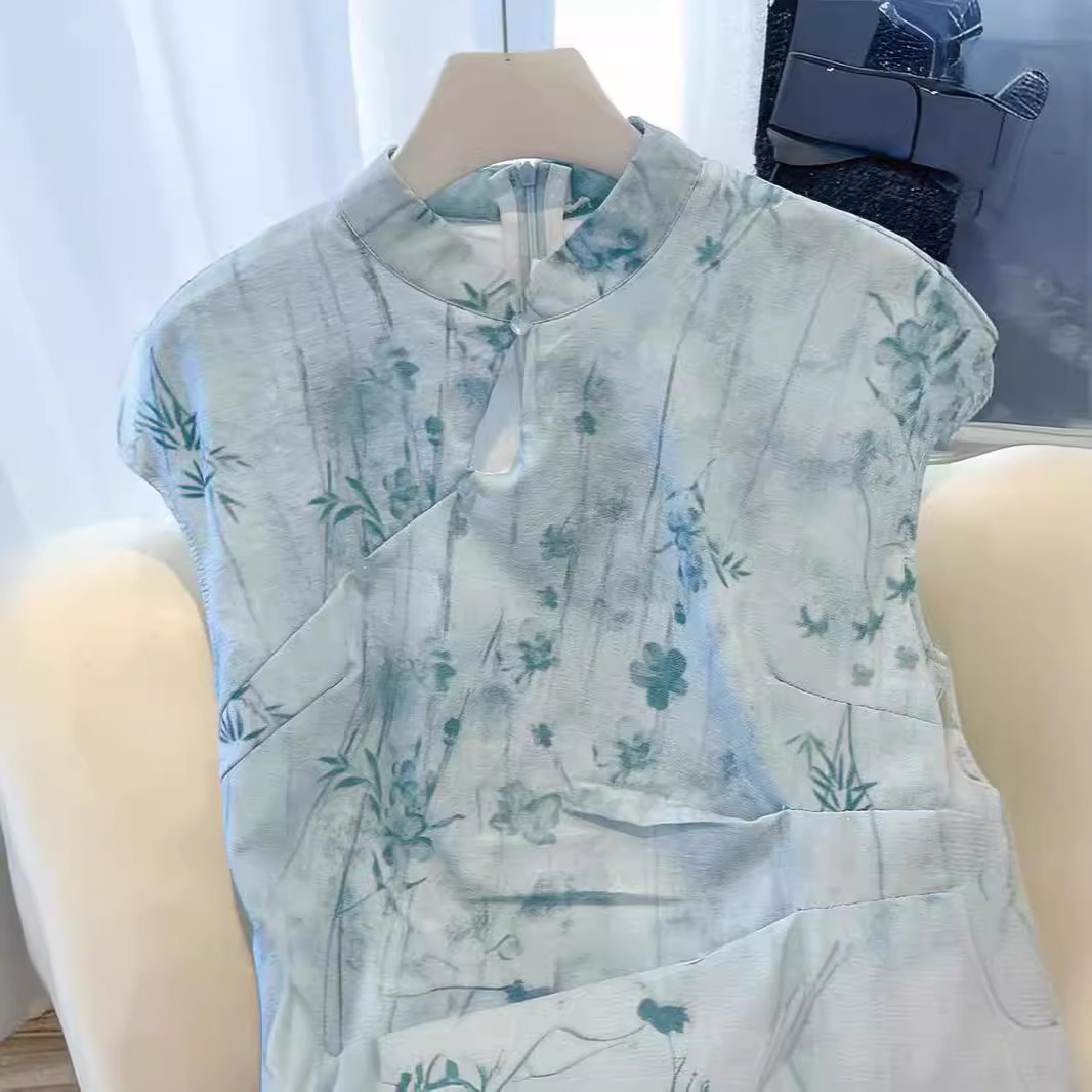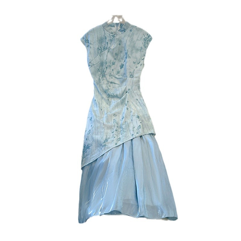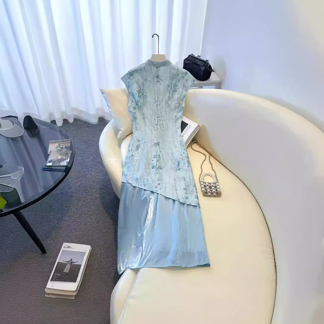 エレガントな花柄刺繍が美しいチャイナ風ワンピースドレスです。