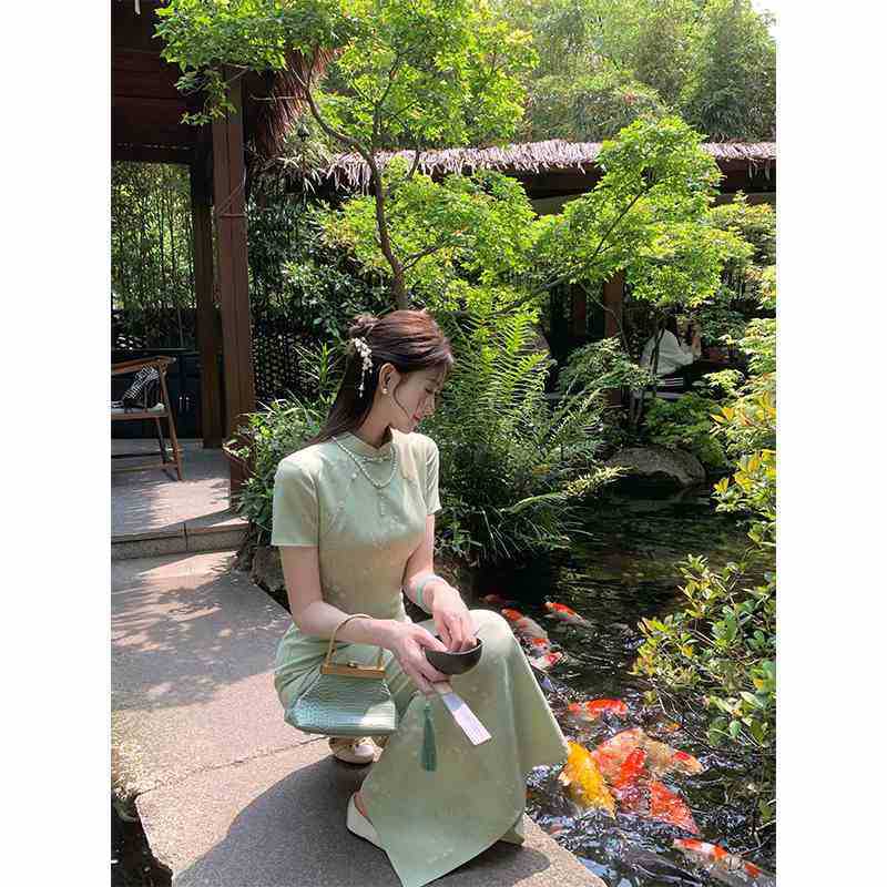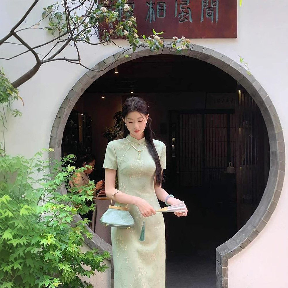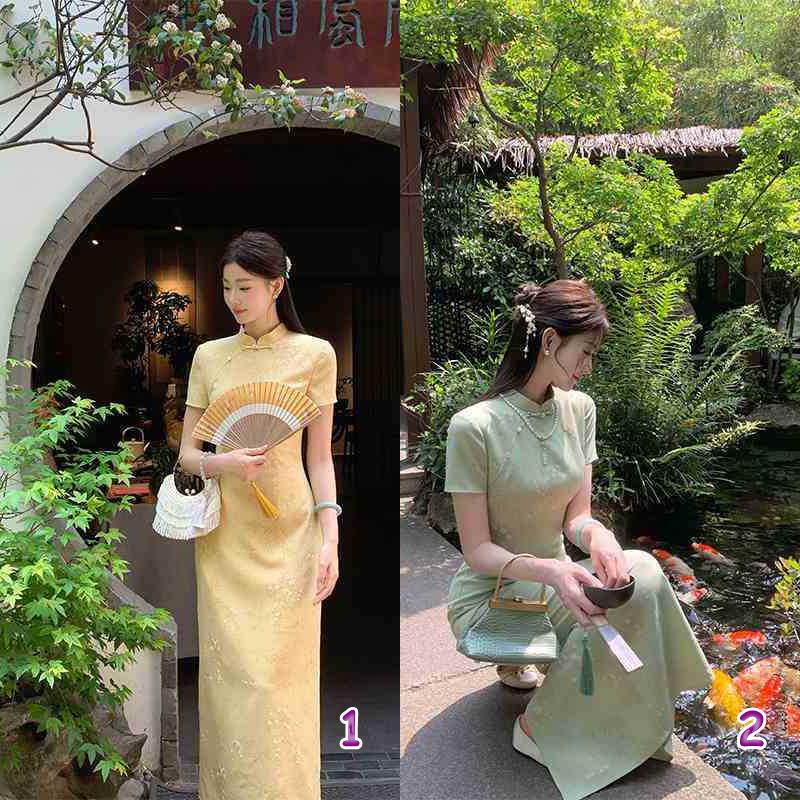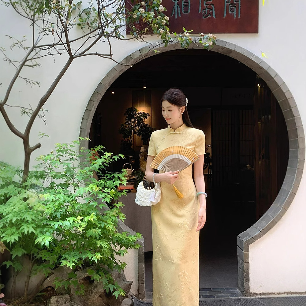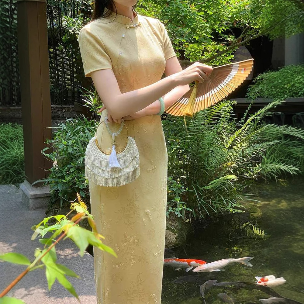 エレガントなチャイナ風デザインが魅力的なロングワンピース。
