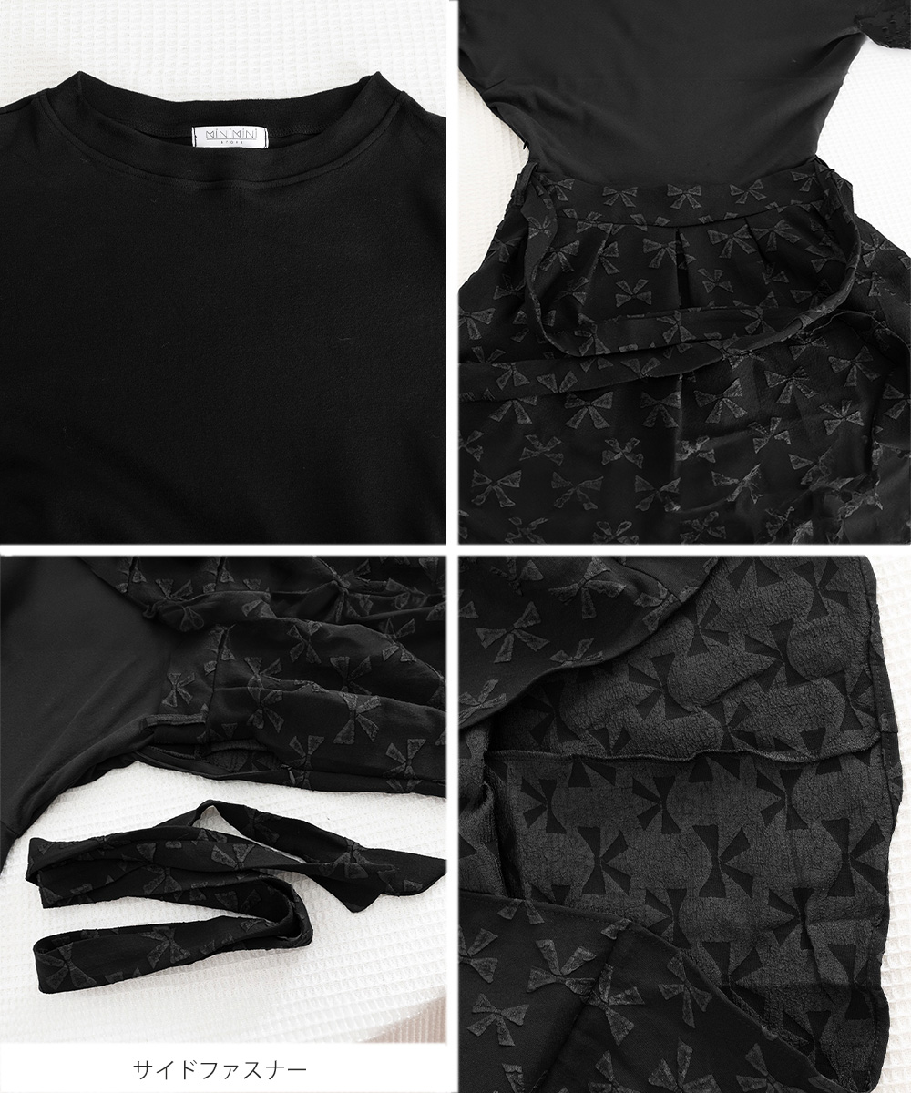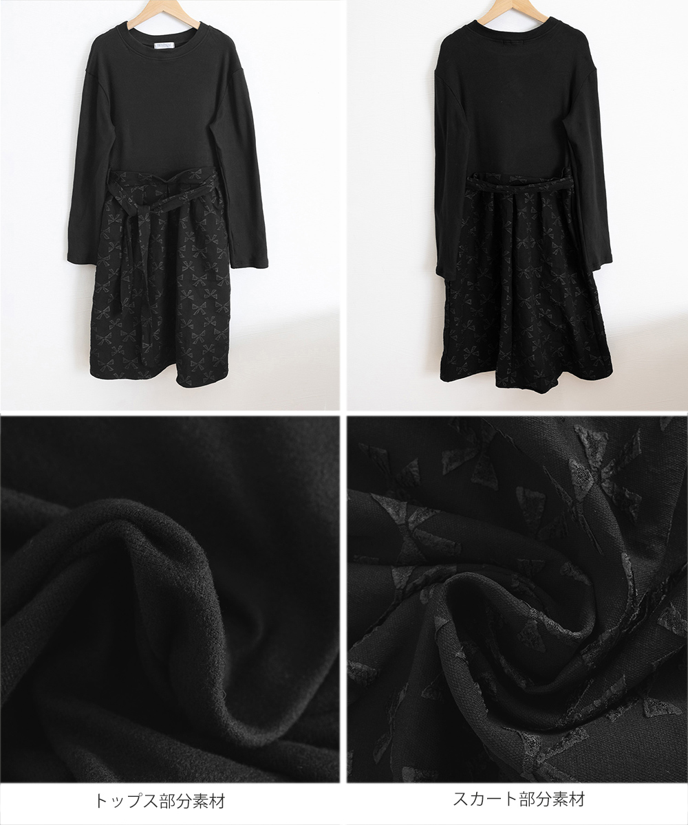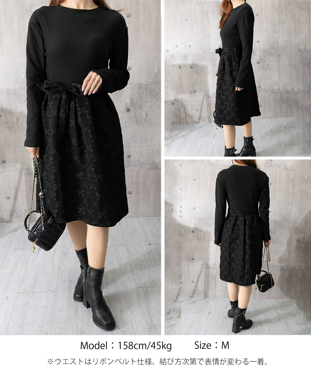 大人可愛いリボン柄の膝丈ワンピースが登場。