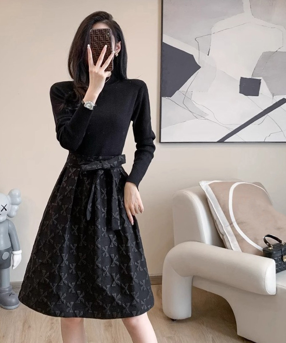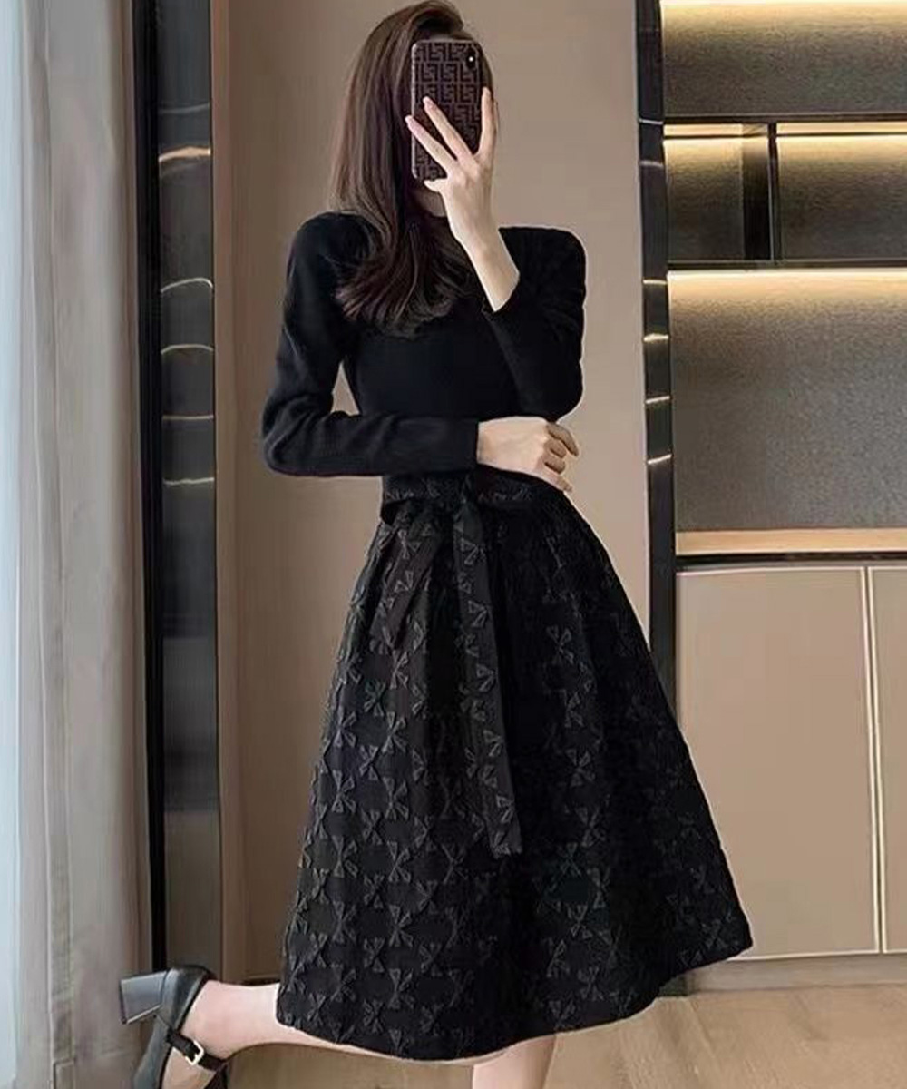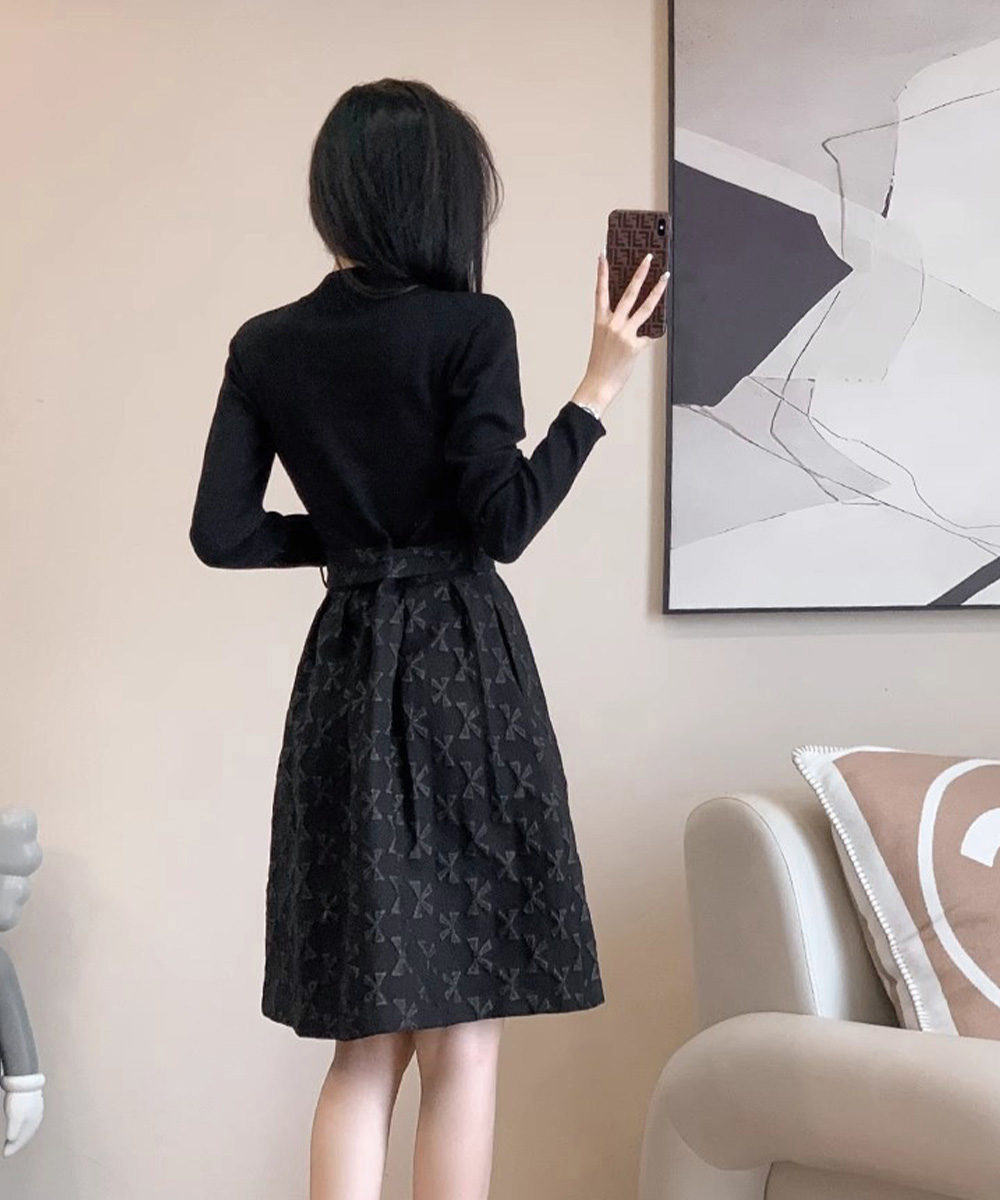 大人可愛いリボン柄の膝丈ワンピースが登場。