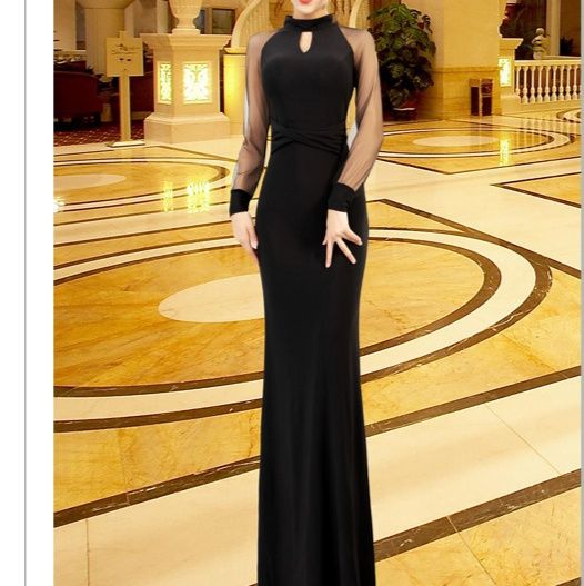 ボディラインに沿ったシルエットが美しい曲線を際立たせ、華やかな場にふさわしい一着となっています。
