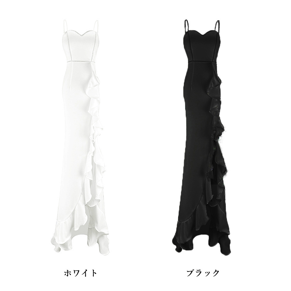 大胆なスリットデザインが美しい脚のラインを魅力的にアピールし、胸元のハートカットが女性らしさを演出します。