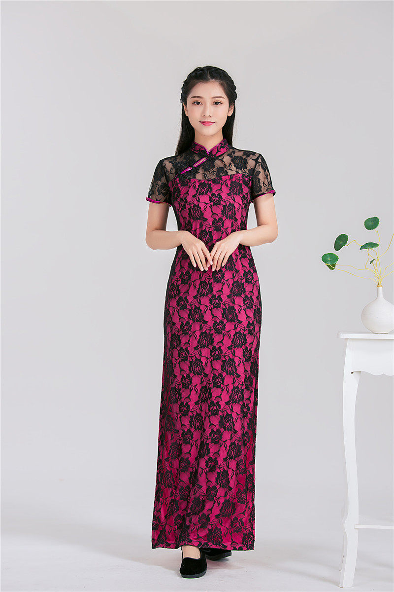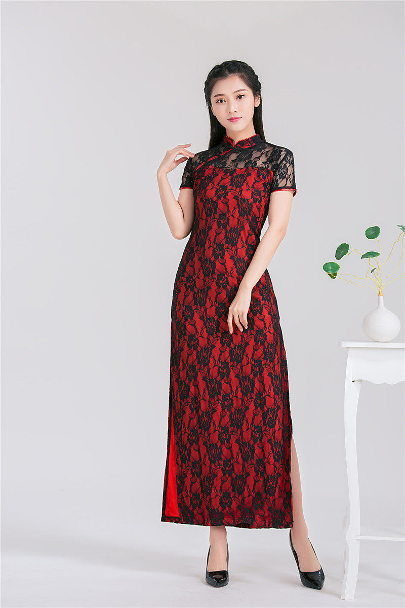 エレガントな総レースが美しいキャバドレスのチャイナです。 繊細なレース素材が袖と胸元を彩り、女性らしさを演出します。 チャイナカラーとすっきりとしたロング丈のシルエットが上品な印象を与え、体のラインを美しく見せてくれます。 サイドスリット入りで動きやすさも抜群です。 華やかな夜の席にふさわしい一着で、特別な日を彩ります。