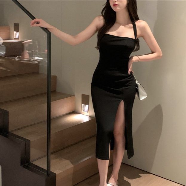 体のラインに沿ったタイトシルエットが女性らしさを際立たせ、サイドの深めスリットが脚を美しく見せます。