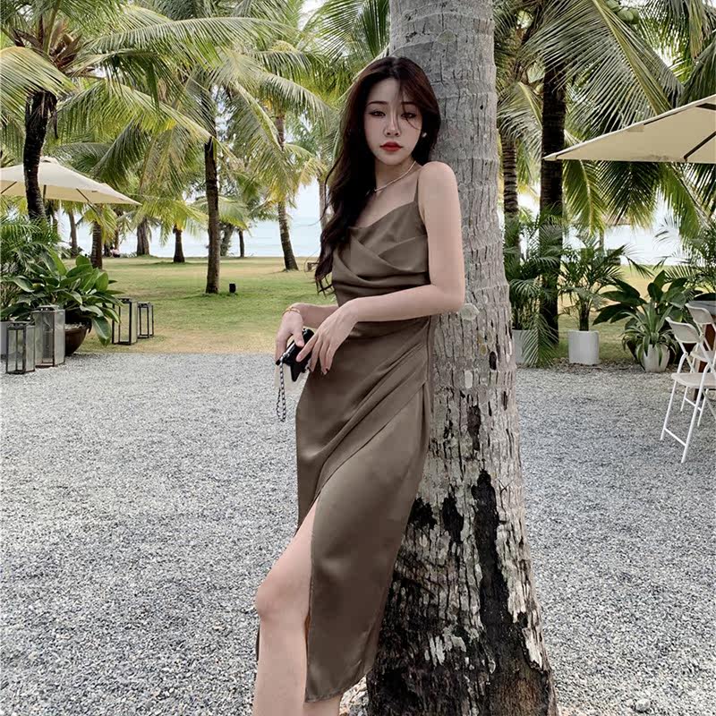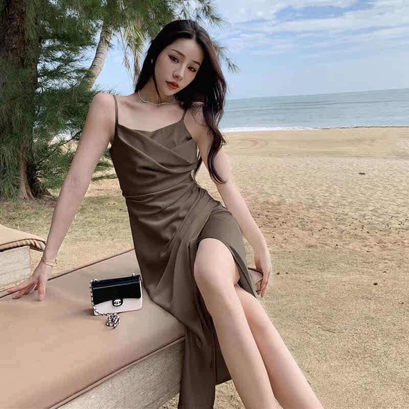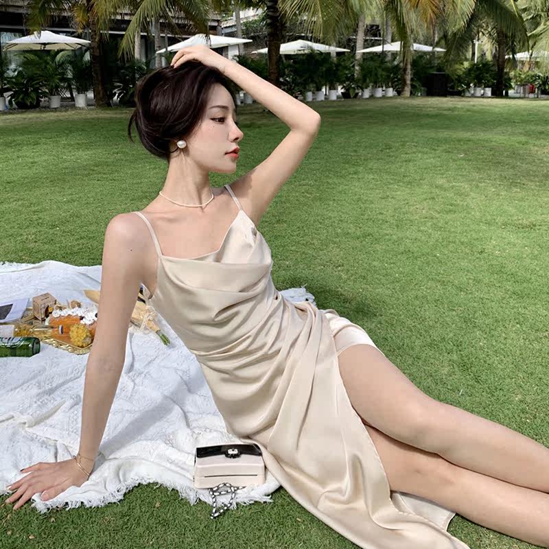 華奢な細紐のキャミソールデザインで女性らしい鎖骨を美しく魅せます。