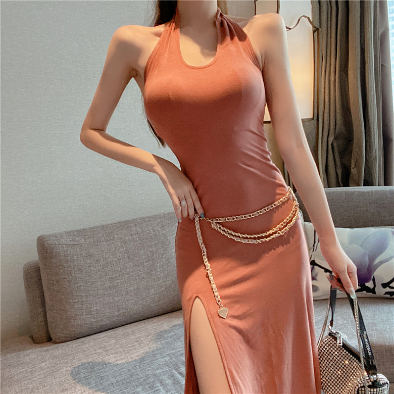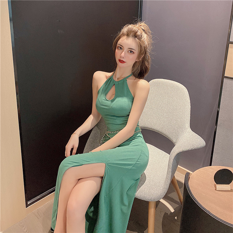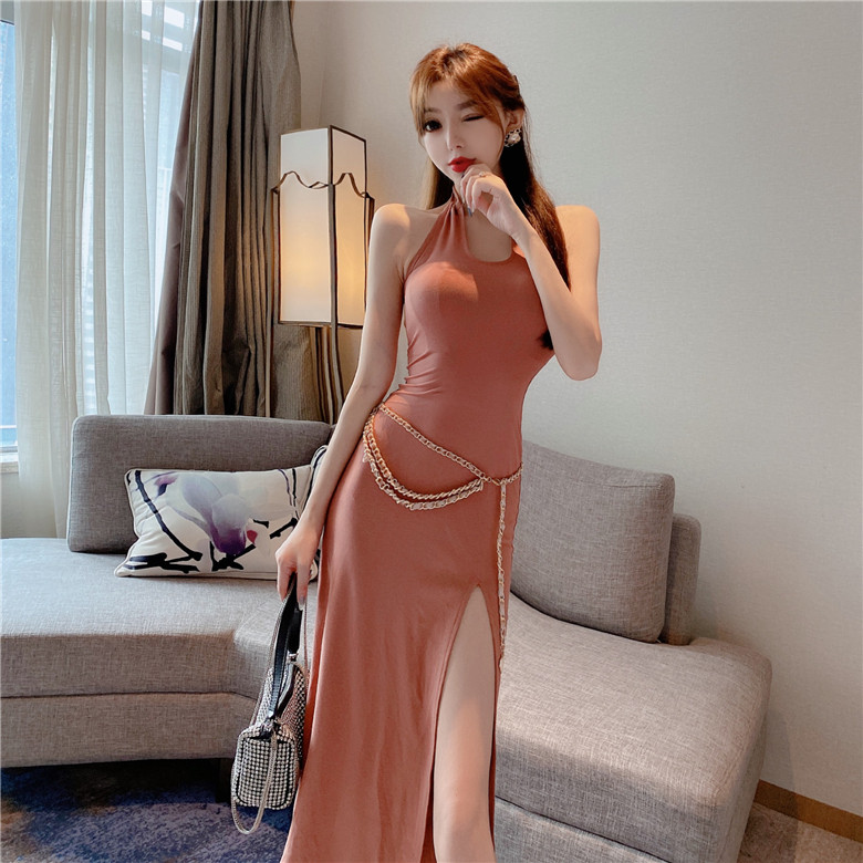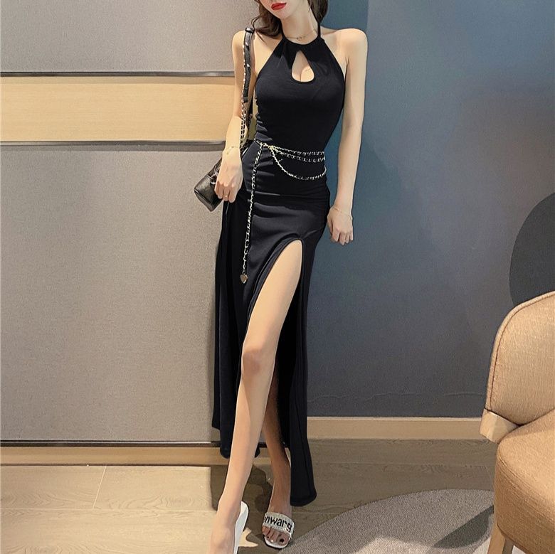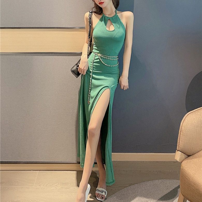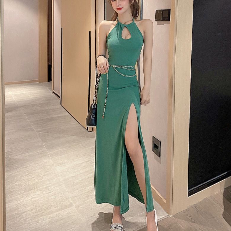 サイドの深いスリットが歩くたびに覗き、女性らしいセクシーさを引き立てます。