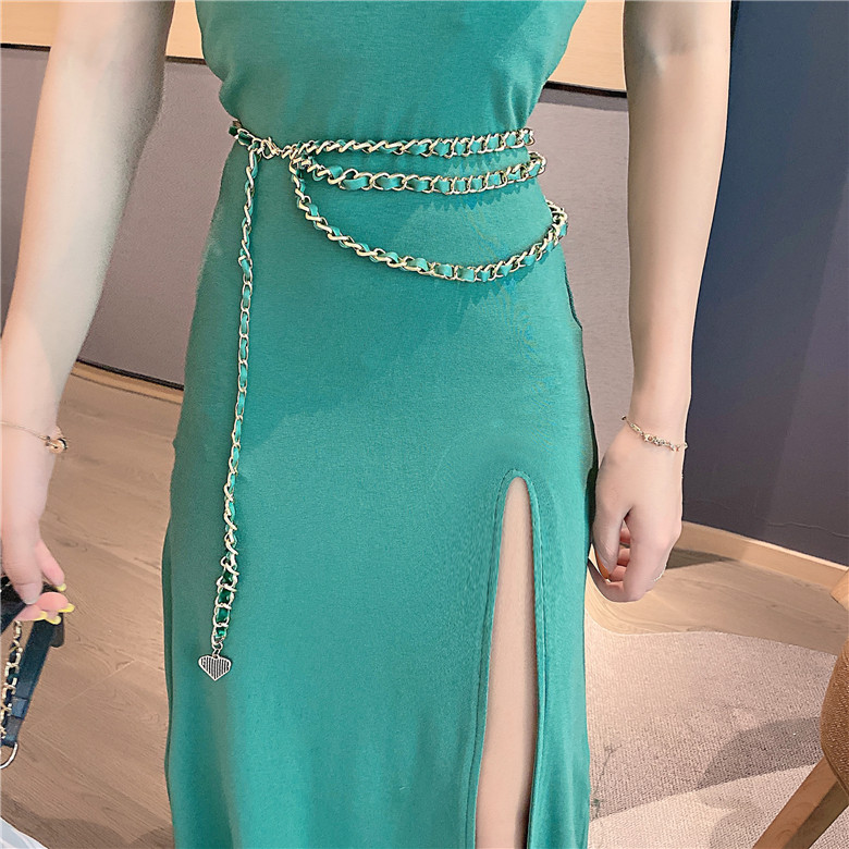 華やかな装飾チェーンベルトが腰元を彩る大人っぽいキャバドレスです。