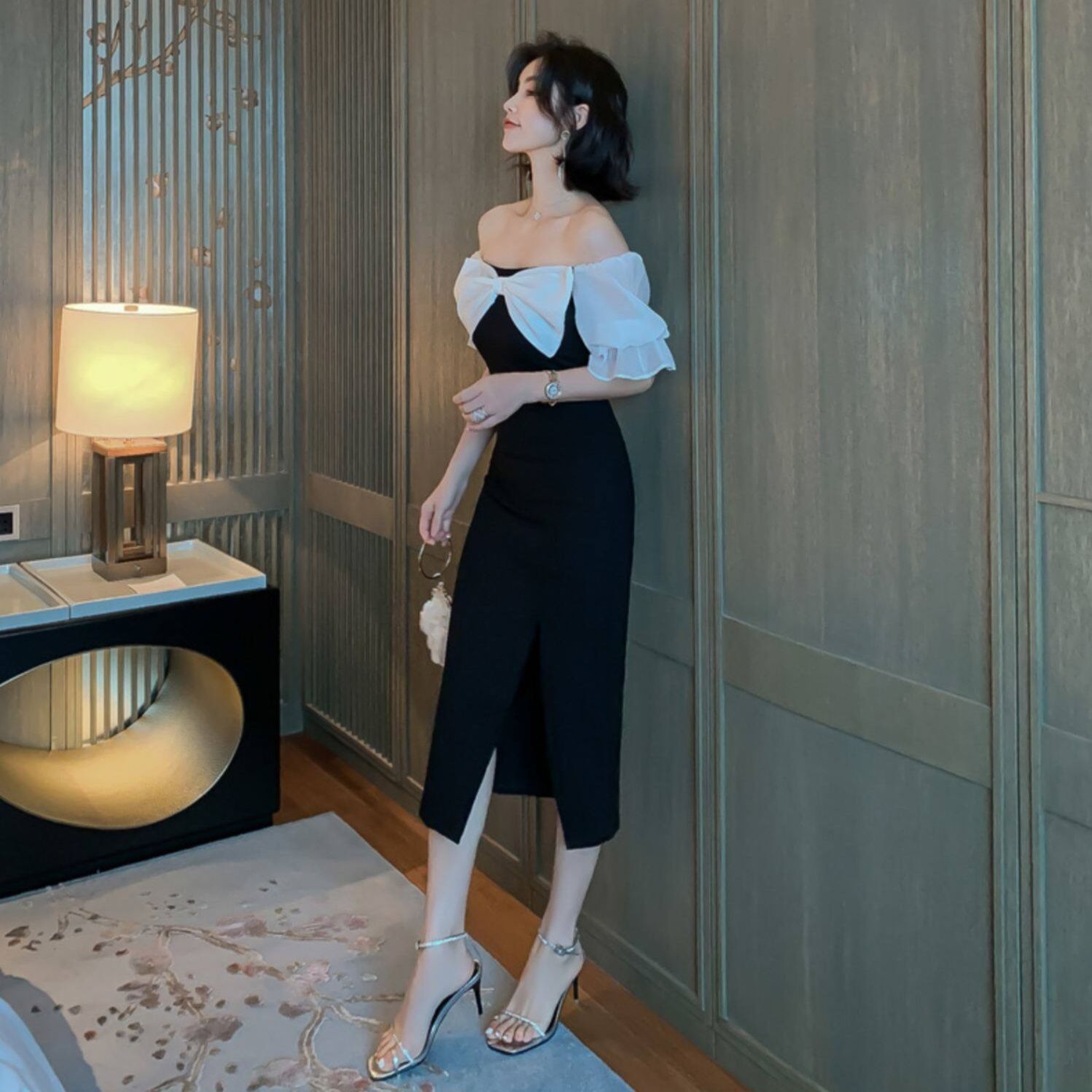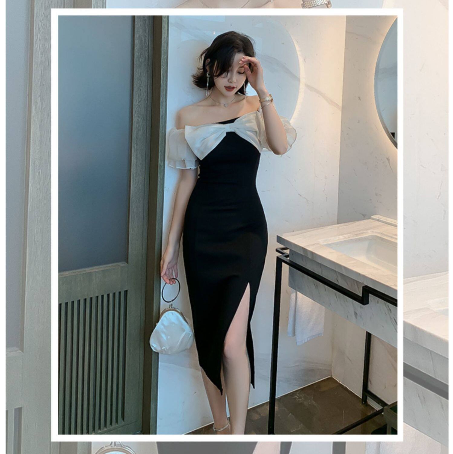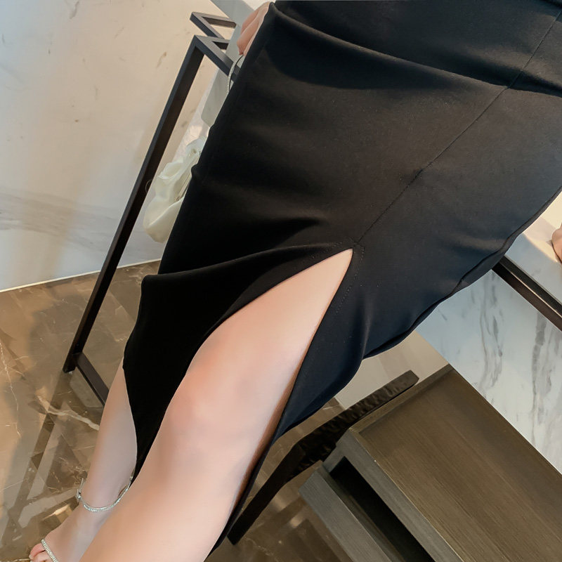 ボディラインに沿ったタイトシルエットが洗練された印象を与え、サイドスリットが適度な抜け感と脚長効果をプラス。
