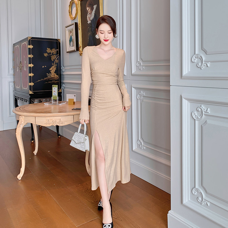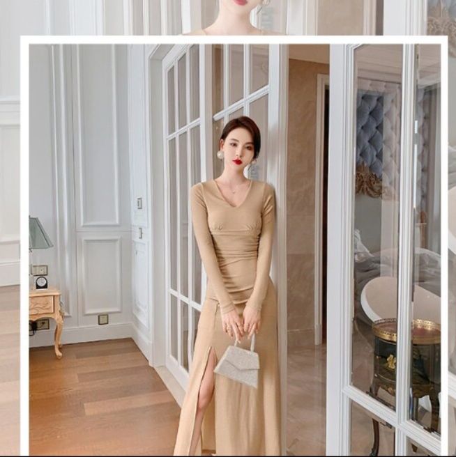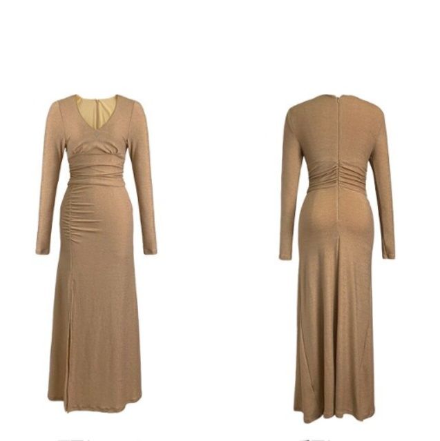 タイトなシルエットとサイドスリットが女性らしさを際立たせ、体のラインを美しく見せてくれます。