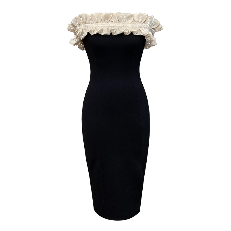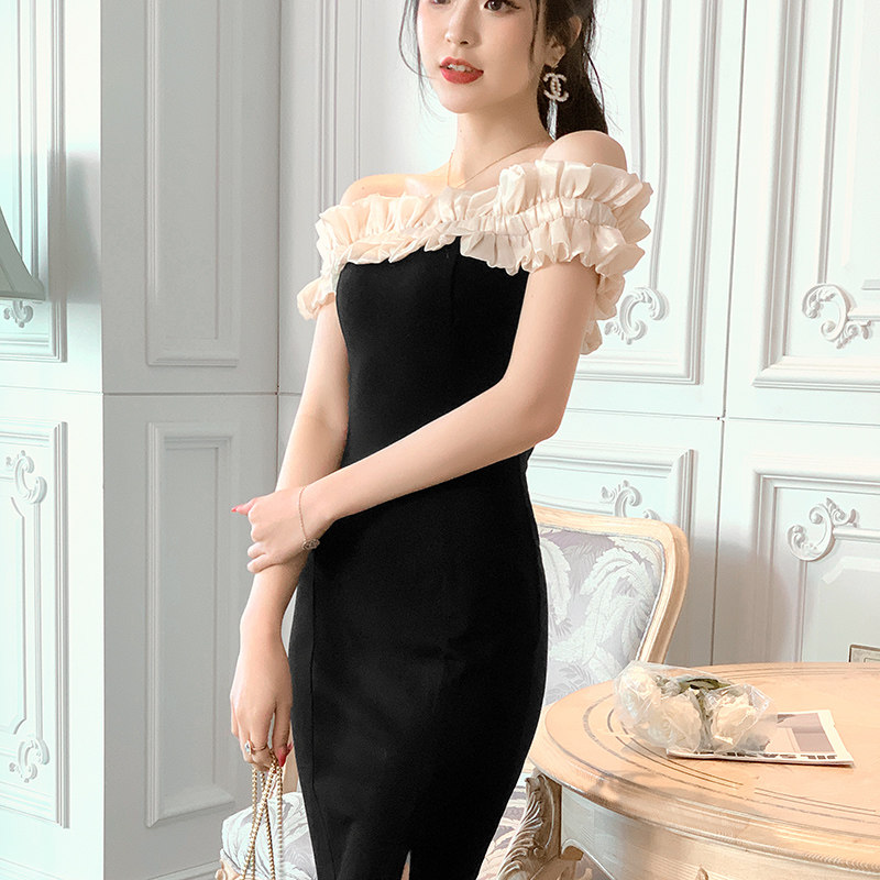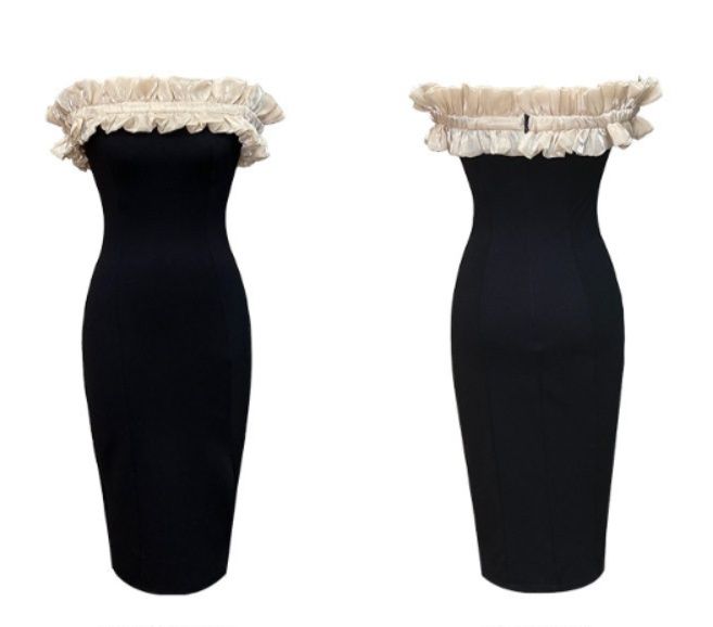 肩を美しく魅せるオフショルと、身体のラインを綺麗に見せるタイトシルエットが特徴的な一着となっております。
