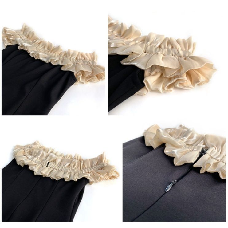 胸元の切替デザインが高級感を演出し、上品な雰囲気を醸し出します。
