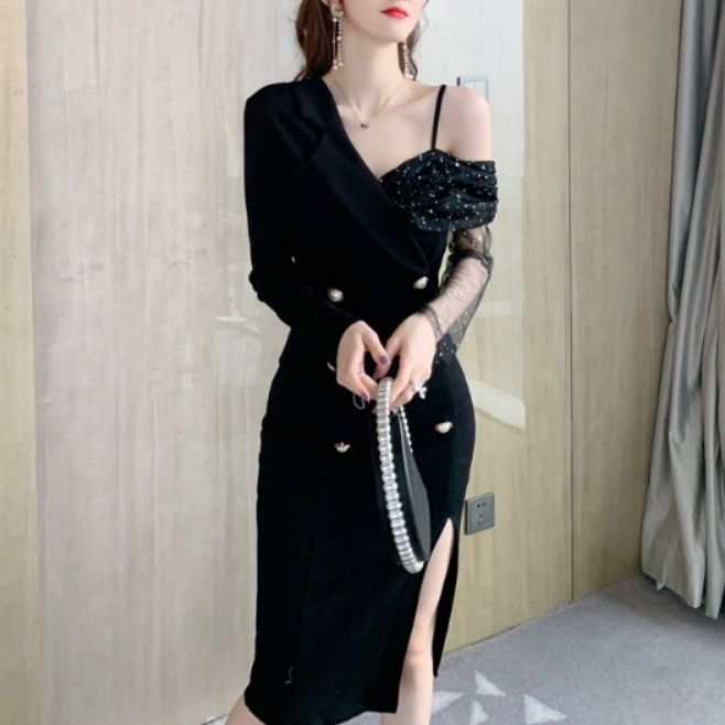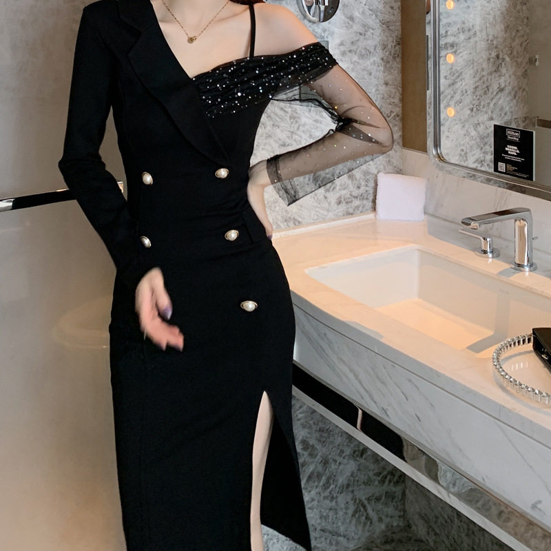 片袖デザインが個性を引き立てるキャバドレスのタイトなシルエットが魅力の一着です。